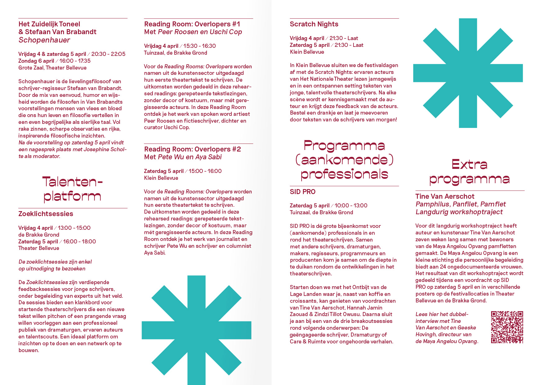 Voor het Vlaams Cultuurhuis De Brakke Grond in Amsterdam maak ik posters, flyers, beleidsnota's, bebording, hand-outs, stickers, menukaarten, social media banners etc. In lijn met de huisstijl van ontwerpbureau Verve.